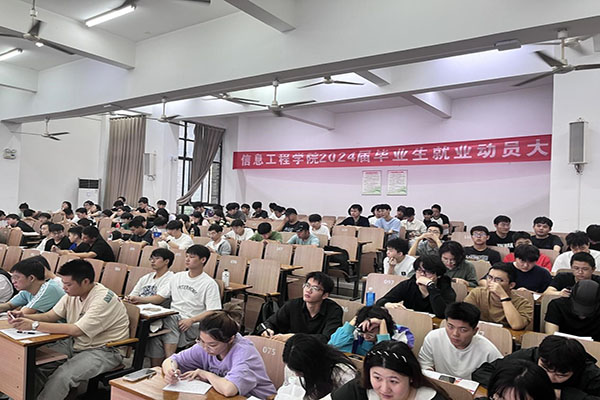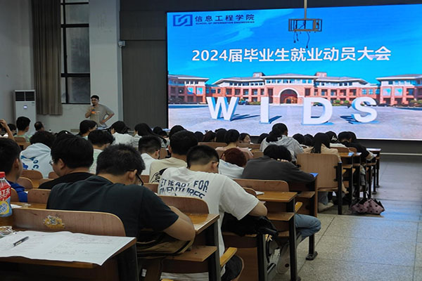 (通讯员 吕昊阳)为深入贯彻落实党中央“稳就业”、“保就业”工作决策部署,引导毕业生树立正确的择业观、就业观,转变“慢就业、缓就业”思想,动员全体毕业生切实抓住就业机会。9月21日中午,信息工程公司于和光1019报告厅组织召开2024届毕业生就业动员大会。本次大会由毕业班辅导员吕昊阳主持,信息工程公司经理汪毅、就业联络人邓清、2013届员工张康、系主任及2020级全体毕业生参加了本次动员大会。