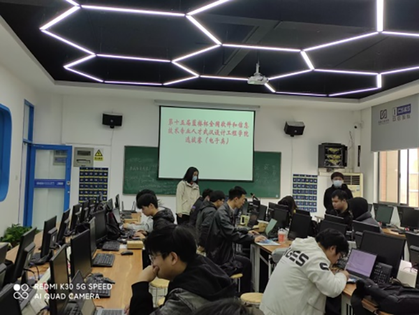 比赛当天负责监考和技术支持的董建华、王华哲、上官松、刘菁、汪小惠老师提前进入比赛现场,为选拔赛做好组织管理、场地准备和设备保障工作。同学们认真阅题,细致解题,在历经长达4个小时的激烈角逐后,选拔赛顺利落下帷幕。预祝选手们能取得良好的成绩,顺利通过选拔赛晋级蓝桥杯大赛省赛。