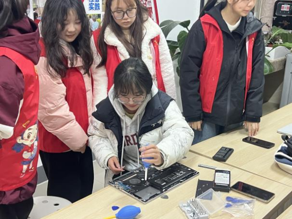 “我的电脑因为长期使用,积累了很多灰尘,导致运行缓慢。本来我已经做好了花大价钱去维修的准备,但幸运的是遇到了你们。你们不仅帮我清灰,还优化了系统,现在电脑运行起来像新的一样。你们的志愿服务真是既实惠又贴心,让我感受到了校园大家庭的温暖。”还有一位男生也对志愿者们的服务赞不绝口