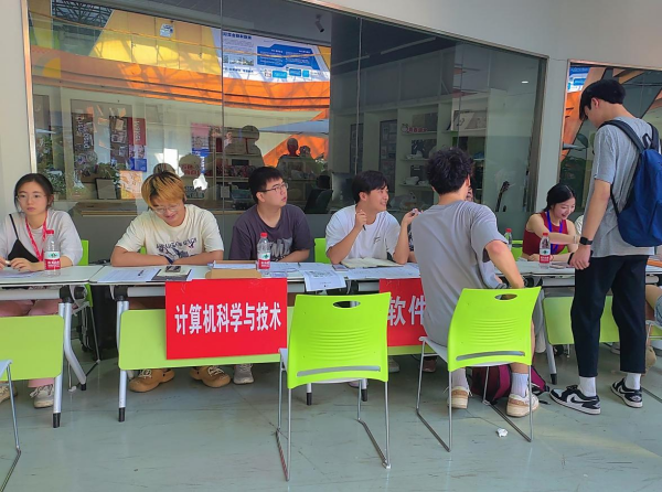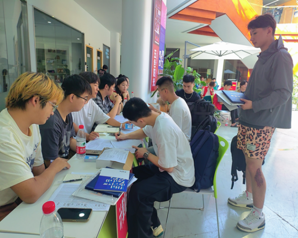 人潮攒动的报到现场,辅导员们和员工助理们一对一热情接待,引导新生办理入学手续、讲解入学注意事项。设有录取信息身份核定组、缴费信息核定组、宿舍安排组等等。