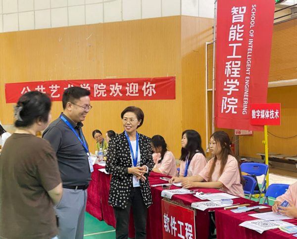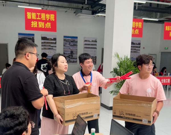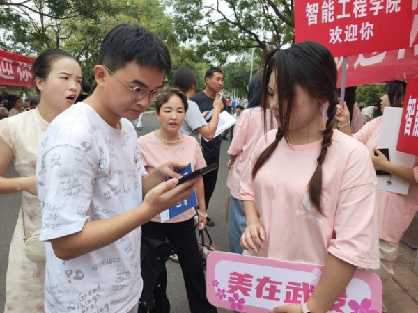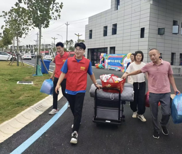鲜艳的迎新展板、横幅上写着热情洋溢的欢迎词,高高举起的指示牌也向新同学展示着学长学姐的关爱,“你是哪个专业的呀?我帮你提行李吧!”一句句亲切的话语化解了新生初入校园的拘谨与陌生,也让家长们感到贴心、放心。
