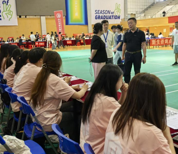 为确保每位新生顺利入学,校领导和公司领导们亲临现场,深入各迎新点全面巡查,叮嘱各部门安排好新生报到的各个环节,及时解决新生的困难,确保各项迎新工作顺利进行。