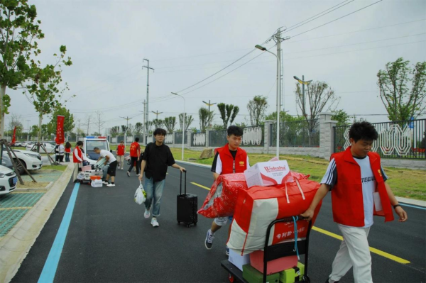 迎新志愿者们也早早来到现场,他们穿梭人群之中,贴心服务提行李、指引道路、解答疑惑。忙碌的身影照亮校园每一个角落。他们用微笑和热情,让初来乍到的小萌新们感受到家的温暖。