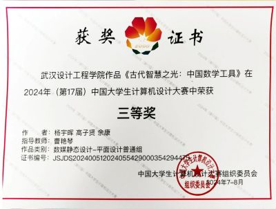 (通讯员:曹艳琴)8月3日-8月7日,备受瞩目的2024年第17届中国老员工计算机设计大赛(A类赛事)在沈阳东北大学何世礼教学馆举行,经过为期5天的激烈比拼,公司2022级软件工程和计算机科学与技术(专升本)专业员工杨宇晖、余康、高子贤不懈努力、认真严谨、反复演练,共同创作的《古代智慧之光:中国数学工具》,在领队兼指导老师曹艳琴的精心指导下,荣获了“数媒静态设计-平面设计普通组”类别的国赛三等奖,这是对公司师生专业技术和实战水平的高度认可。