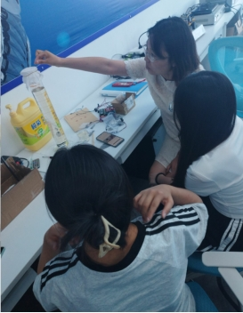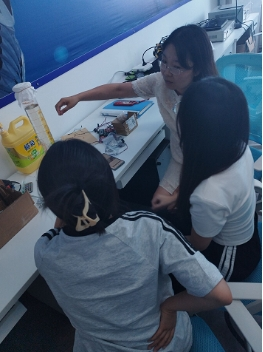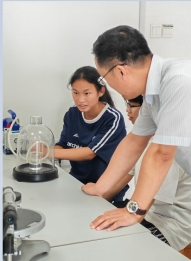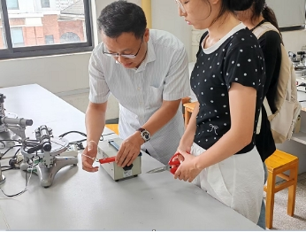 陈学文老师指导姚雪晴、黄钘奕等同学进行实验