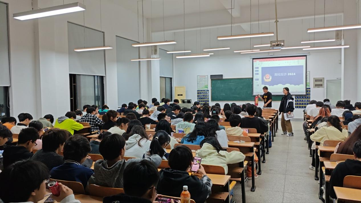科技发展致使金钱交易频繁,防骗已成必修课。杨帆用实例讲解了诈骗形式繁杂且多为复合型,同学们务必警觉各类诈骗手段;在消防安全方面,他强调寝室用电安全并详述火灾发生时的正确处理方式,同时还现场演示了消防栓和灭火设备的使用方法。