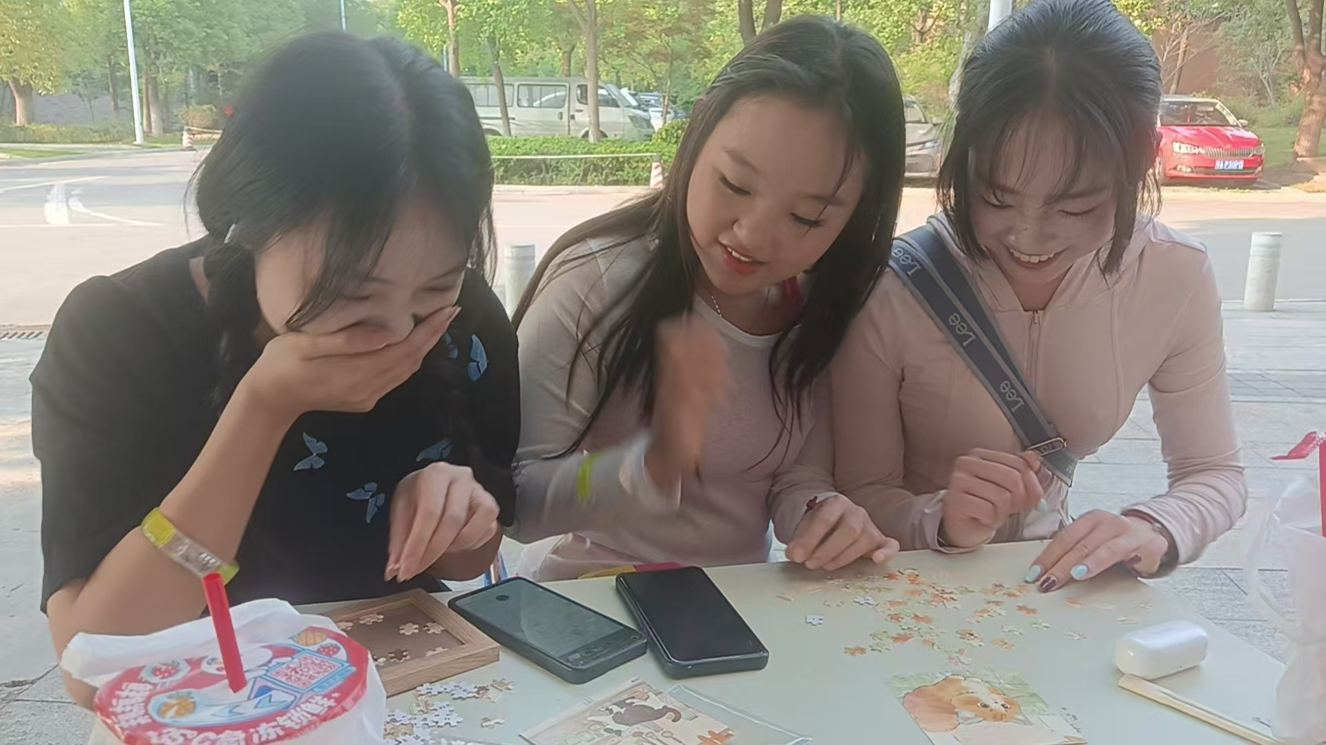 其中,市集的DIY摇头小摆件摊位备受欢迎。活动打破传统模式,将照片创意扣图与小摆件结合。现场同学们挑选照片扣图装饰,经打印、裁剪过塑后制成摇头小摆件。独特玩法吸引师生广泛参与。