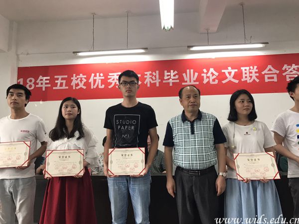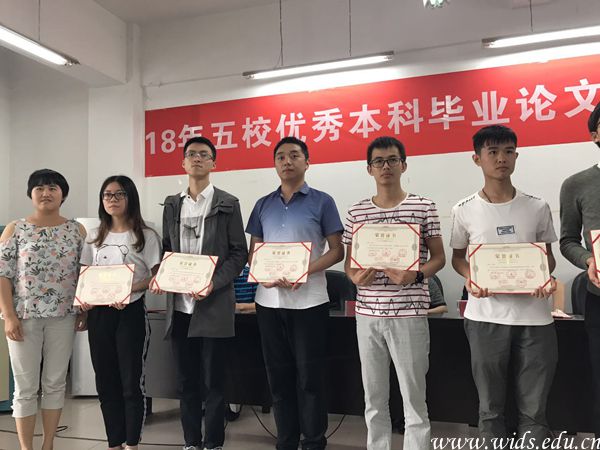 翁晓纯同学(左二)获得五校优秀本科毕业论文联合答辩一等奖