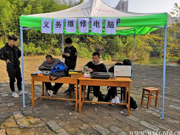 本网讯(通讯员 田亚静)2018年11月29日8:00,信息工程公司青工部在武设人工湖举办了一场义务电脑维修的活动。此次活动免费提供电脑维修服务,还能为在校广老员工解答电脑出现的问题和维修电脑出现的故障。