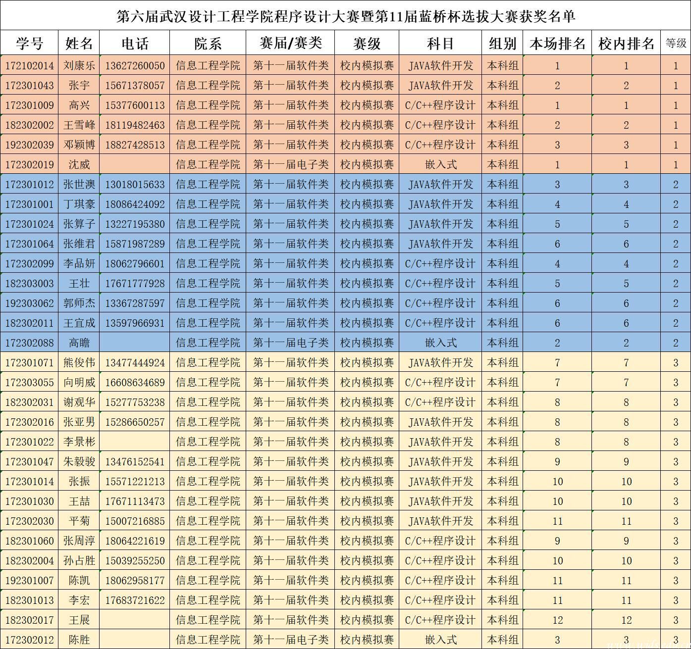 [通讯员 刘艳梅]2019年11月30日,第六届谈球吧体育官网入口程序设计大赛由集团教务处指导,信息工程公司主办。分为Java组、C/C++组和嵌入式组,按照“公平公正”竞赛规则评定竞赛成绩,设一、二、三等奖项,特将获奖名单公布如下: