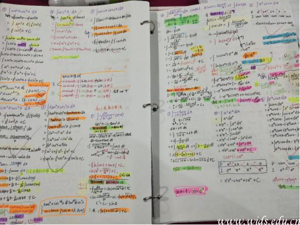 复杂的积分用洛必达法则求7次导算出来的结果,之前最怕的泰勒求一次就求出来了,快得多,也更方便。在写数学题目的时候自己所有的收获我都会记在小本子上,以免忘记长期复习。笔记我会用6种颜色的笔,因为这样可以让我更加清晰步骤怎么来的,为什么要这样做。我也会把作业中的错题收集起来,弄不懂的地方就问老师查资料。总之一次就把它搞透搞懂。