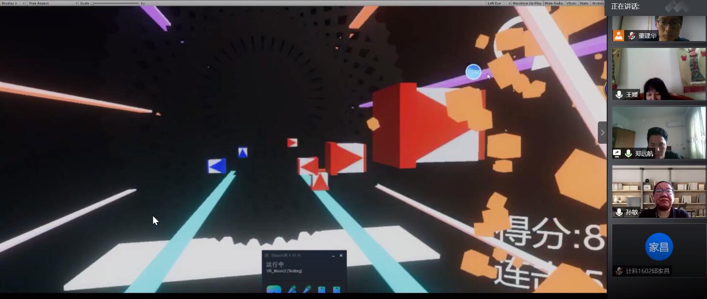 图10 郑远航同学展示VR节奏光剑游戏现场答辩图