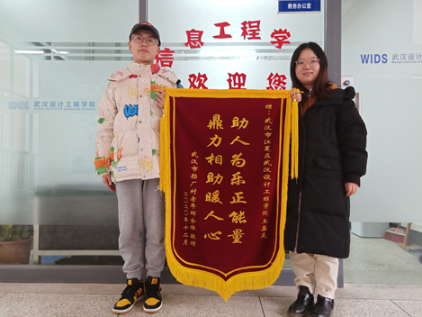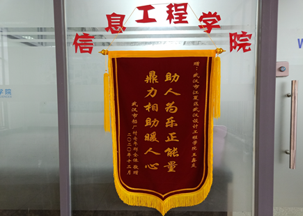 本网讯(通讯员 易婉琳)12月11日,信息工程公司收到了一面锦旗,锦旗上“鼎力相助暖人心 助人为乐正能量”几个大字赫然在目,锦旗是“武汉市船厂村老年群全体”送给计算机科学与技术专业1801班王鑫炎同学的。