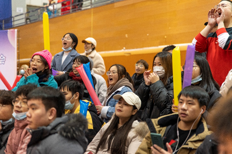 下午5点40,球员们已经到场做着准备活动。随着裁判的哨响,整个球场就充满了紧张的气氛,球员的激情全都淋漓尽致的体现在此刻的篮球场上。比赛过程中,各位队员都全力以赴,用心防守、有力阻挡,越战越勇,每个队员都用心跑位。赛场上双方拼抢很激烈,带球、运球、投篮等一系列动作潇洒、规范,引来围观同学一阵阵地喝彩。在场同学也情绪高涨、摇旗呐喊、击鼓扬威,不时为队员打气、喝彩,气氛十分热烈。