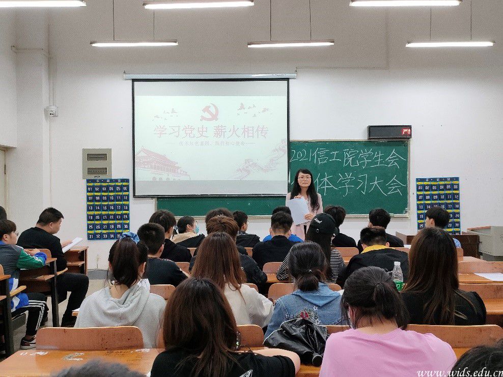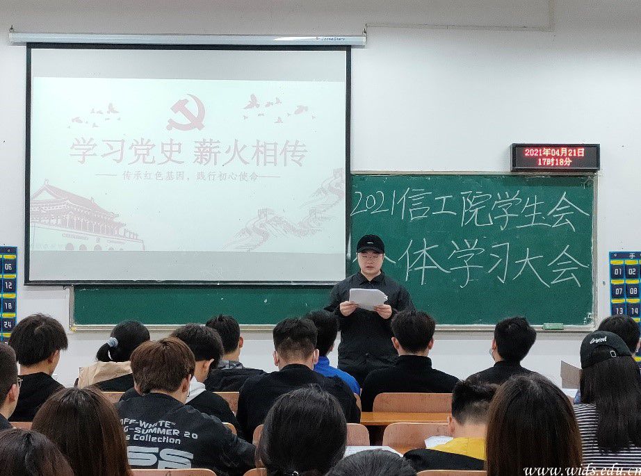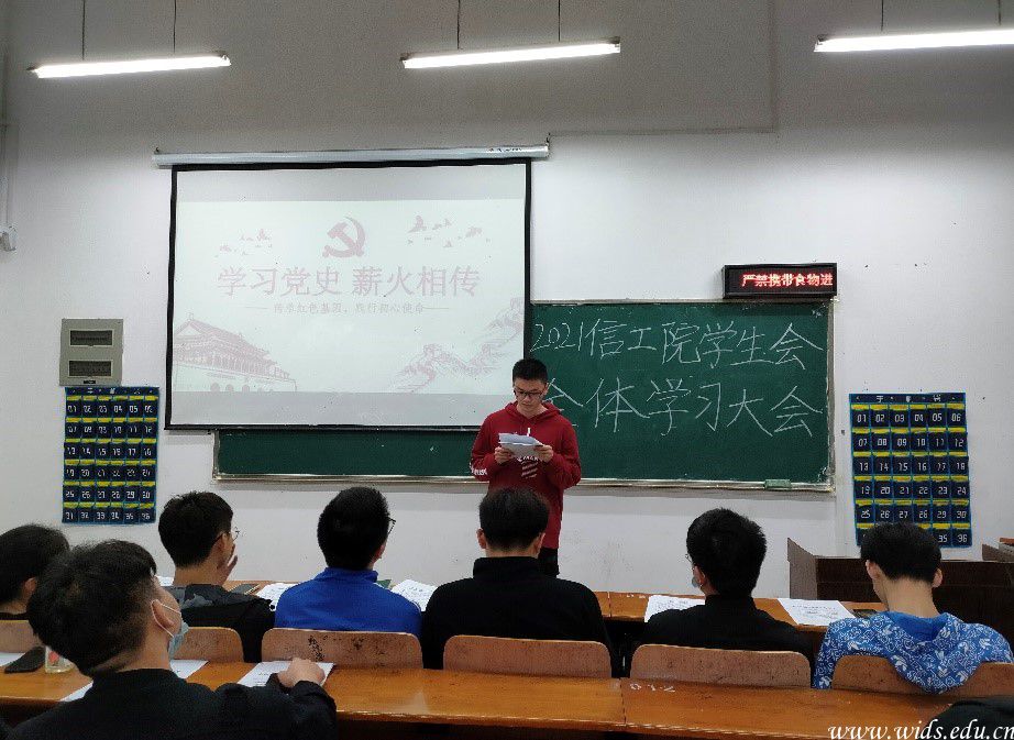 (通讯员 罗璐)为了加强党史教育及分团委员工会组织成员的宗旨意识和规章制度教育,2021年4月21日下午五点整,信息工程公司分团委员工会全体员工干部学习大会在临湖轩A1029召开。信息工程公司辅导员邓佳及全体员工干部出席了本次会议,会议由辅导员邓佳主持。