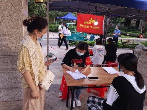 “请大家按次序过来做好登记 ”“ 请互相保持好一米远的距离”…… 在武汉市东西湖区常青花园社区,2020级的湛思敏同学在烈日下维持着居民核酸检测的现场秩序、信息录入、健康码的检查工作等。在志愿者工作的这几天里,让她感受到了心疼、难受与感动。心疼的是武汉熟悉的应急意识,去年的创伤她永远也忘不了;难受的是三伏天里护士依然穿着加厚防护服,一晒就是一天;感动的是没有人特别紧张,也没有人特别放松,大家还是做自己的事,排着长队保持着一定的距离,路边堆着成箱的免费矿泉水、共享的花露水……武汉人对疫情的自觉性,不需要规定,就已经有着天然的默契,不去人多的地方,从自我开始防护,是武汉人对这座城最用力的守护。武汉!我们可以无条件的相信它!