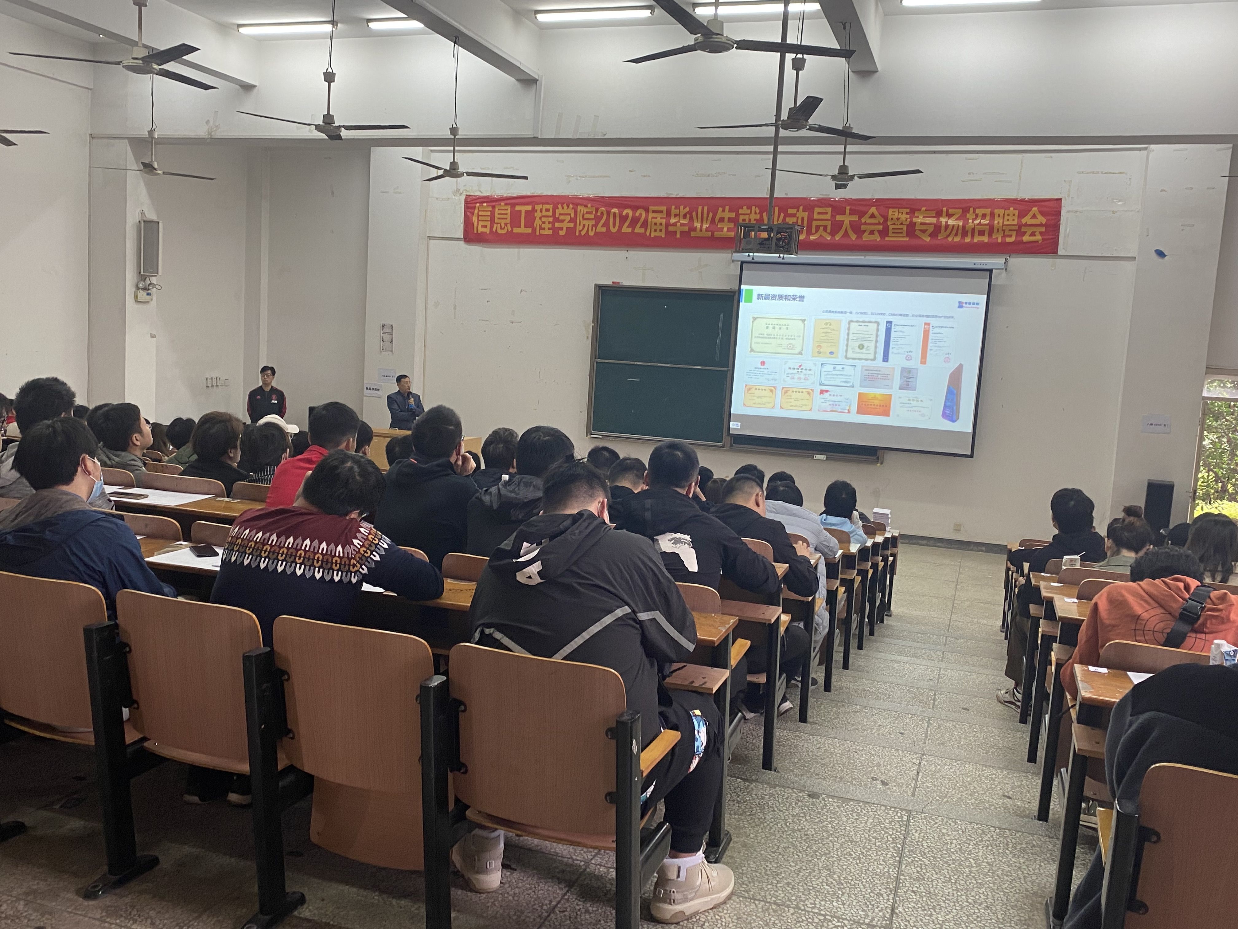 (通讯员 易婉琳)为做好2022届毕业生就业工作,信息工程公司整合资源,2021年10月18日上午在八佾1019举办了专场招聘会,本次专场招聘会共五家企业参会,分别是新晨科技股份有限公司、武汉兴创智能科技有限公司、武汉锐科光纤激光技术股份有限公司、上海讯锡信息科技有限公司、天博电子信息科技有限公司。招聘会岗位与毕业生所学专业对口性强。